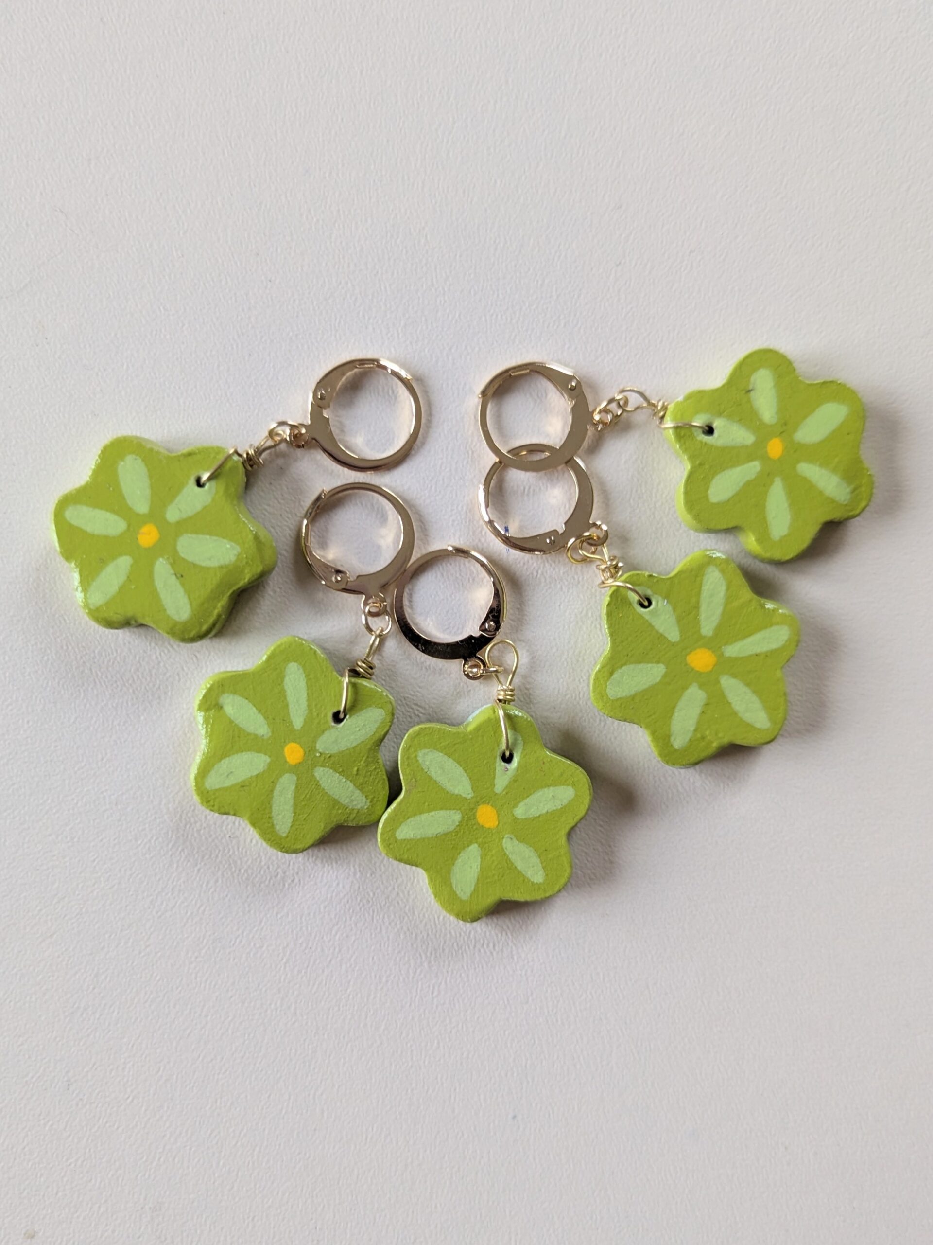 Les marqueurs de mailles de la collection Marguerite reprennent la forme simple d’une fleur, avec des pétales dessinés à la main.