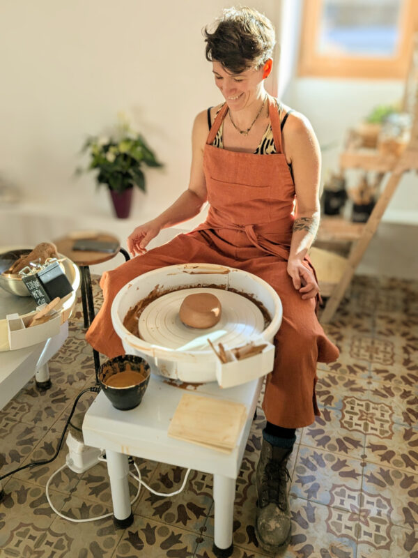 Je me suis lancée dans la création d’un modèle robuste, confortable et fonctionnel, pensé pour le travail du tour… mais vite adopté bien au-delà des ateliers de poterie.